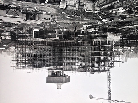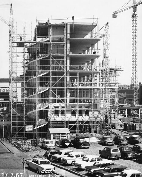 The glass staircase has an entrance there. It is just standing on its thin column, relentlessly, every day. It is clean; even its windows are clean. It would have twelve sides; if it were complete it would have ten rows of windows. Sometimes after work, I sit in Anglia Square and count these things.