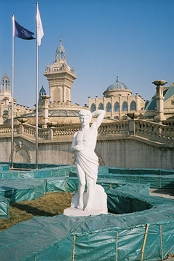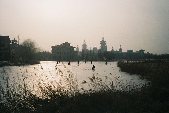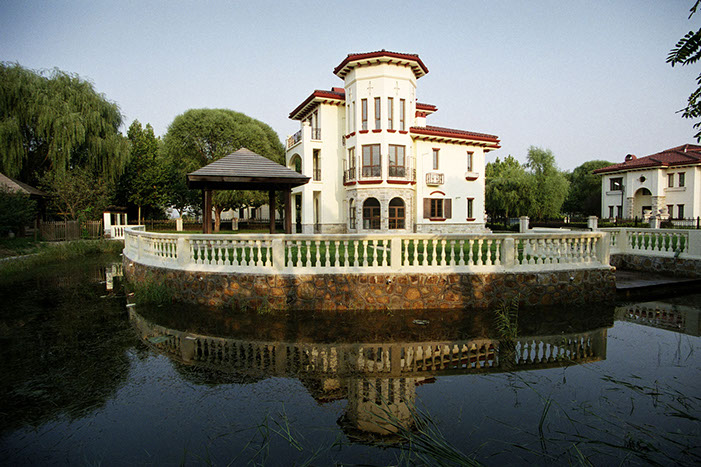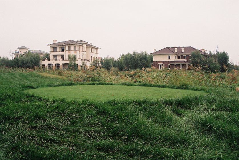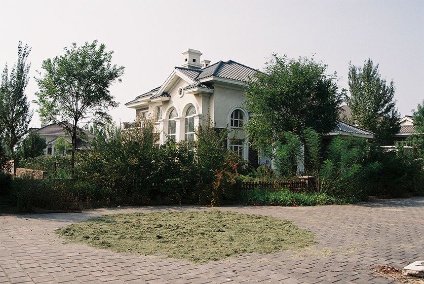 Jing Jin City is an installation series (Grass House, Glass House, Wall House, Curtain House, Tile House) and exploration of a newly built luxury resort town near Beijing that has remained largely unoccupied since construction began in 2002.